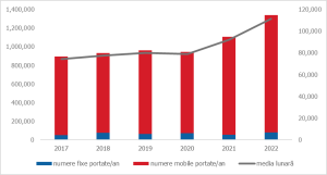 În anul 2022 au crescut semnificativ (cu peste 30%) și portările numerelor de telefonie fixă. Astfel, în acest an, au fost portate 81.020 de numere de telefonie fixă. Majoritatea utilizatorilor au optat pentru ofertele următorilor furnizori: RCS & RDS (26.259 numere), GTS Telecom (15.345), Vodafone (12.516), Orange (10.744) și BT Global Europe (4.542).