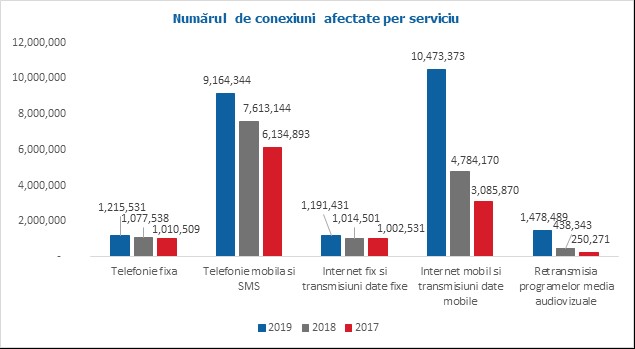 Conform datelor raportate de către furnizorii de servicii de telecomunicații privind incidentele care au afectat securitatea și integritatea rețelelor și serviciilor de comunicații electronice, în 2019 s-au înregistrat 794 de incidente cu impact semnificativ asupra securității și integrității rețelelor și serviciilor de comunicații electronice, în creștere cu 43% față de 2018. Acestea au afectat, în total, peste 23 de milioane de conexiuni.